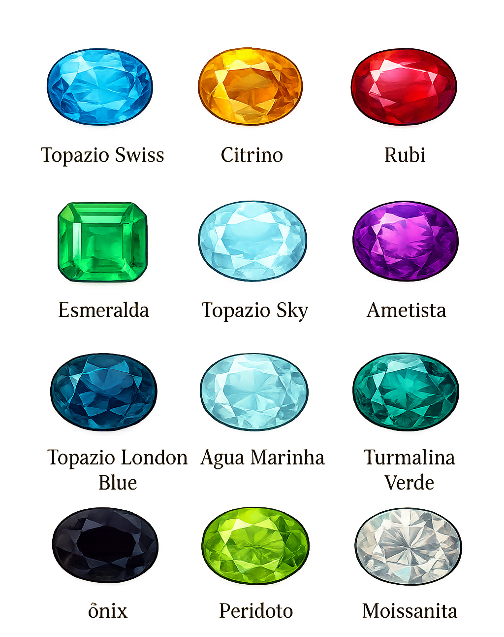 A única exceção é a moissanita, uma gema especial com origem diferente com brilho intenso, uma opção mais sustentável e acessível ao diamante